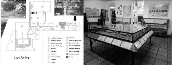 Figura 2. A la izquierda, plano del MUHFIT. La flecha indica la ubicación de la sala seis.