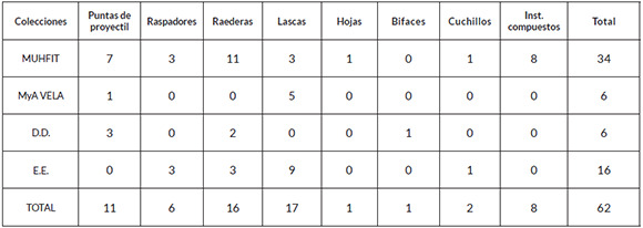 Tabla 3. Clasificación del material tallado por grupos tipológicos.