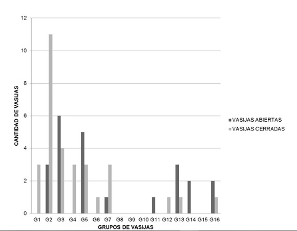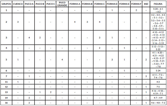Tabla 2.Formas abiertas y cerradas identificadas en El Taco 19, discriminadas por grupo