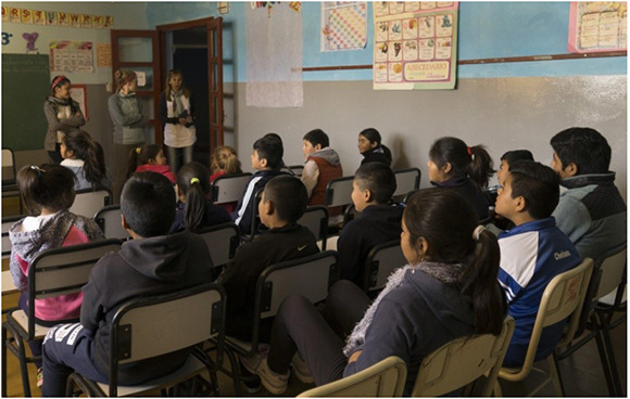 En el marco de la organización del viaje, se propuso a las/los estudiantes realizar charlas sobre arqueología en las escuelas de la zona. Esta fue una actividad optativa, de la que participaron nueve estudiantes a quienes les interesó la propuesta, y fue gestionada por el Secretario de Cultura y Turismo de la municipalidad de Puerta de San José, quien acordó las fechas y horarios con los directivos de las escuelas.