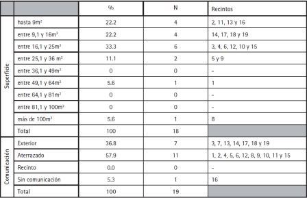 Tabla 3. Clasificación de los recintos de acuerdo a su superficie y al tipo de comunicación de sus accesos.