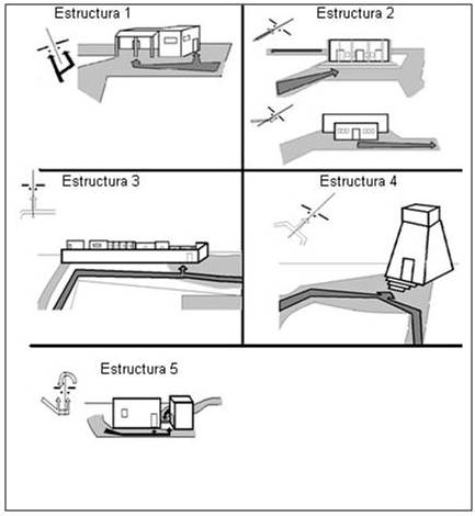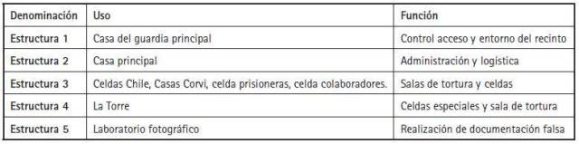 El sitio de Villa Grimaldi posee cinco estructuras que se sintetizan en la Tabla 1 y Figura 2.