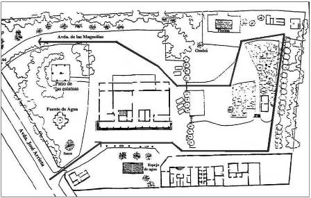 El Cuartel Terranova (Figura 1) se encontraba ubicado de forma aislada (considerando la época) en una zona precordillerana del sector sur oriente de Santiago, ocupando un área de aproximadamente 11700 m2. Vale destacar que en aquel momento existían a su alrededor hectáreas de pastos y tierras de cultivo. A unos 800 m se encontraba el Aeródromo Tobalaba, ubicado hacia el noroeste del sitio y desde donde solían operar gran parte de los helicópteros del ejército (Corporación Parque por la Paz 2004)1. A una milla de camino hacia arriba se encontraba el Regimiento de Telecomunicaciones, desde donde Pinochet dirigió las operaciones el día del Golpe Militar (Corporación Parque por la Paz 2004). De esta manera, la posición del Cuartel Terranova era estratégica.
