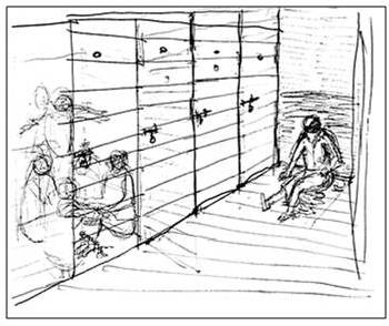 Figura 11. Detenido desangrándose. Dibujo realizado