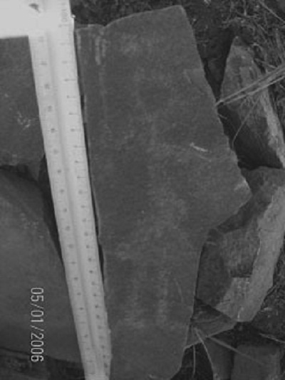 2) Tampoco se han realizado excavaciones en Los Cerrillos, por lo cual no se han podido registrar hallazgos contextuales que ayuden a ubicar cronológicamente a los grabados. Si bien se han hallado fragmentos cerámicos en superficie, éstos presentan un alto grado de erosión que impidió realizar su caracterización cronológica. Más allá de éstos fragmentos cerámicos no se han hallado en superficie otros restos significativos de cultura material que puedan brindar alguna pista acerca de la temporalidad del sitio.