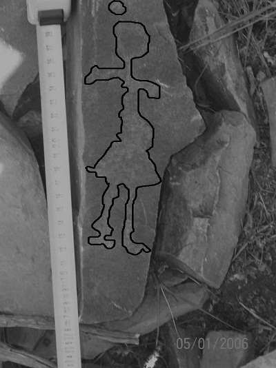 Figura 4. Grabado en donde se aprecia una figura femenina posiblemente embarazada y su calco correspondiente.