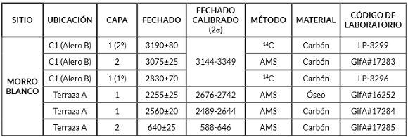 Tabla 1. Fechados radiocarbónicos de Morro Blanco (tomado de Hoguin y Kohan 2018)